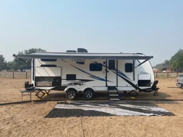 RV With Everything! Sleeps 8, AC, Heat, TV, Radio with Bluetooth indoor and outdoor speakers. Full kitchen with burners, oven, microwave and full fridge. Full bathroom with shower/tub, sink and vanity. Also includes outdoor kitchenette with mini fridge, sink and propane grill. Full length awning with lighting. Great storage inside and outside. Use of generators included in price. Linens and kitchenware upon request. Great new camper with everything you need for a great experience. Note: some amenities may have limited or no use depending on power use. (Full hook-ups, Generator, Propane, Battery)What's includedLinens, Generator if needed, Kitchenware other items upon requestOther things to noteBlack and Gray tanks must be emptied and cleaned prior to return.