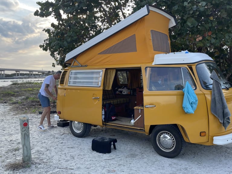 He can sleep up to 4 adults with 2 in the pop top and 2 on the bottom fold out bed. She has working electrical for city hook ups and lots of plugs for phone and tablet charging! She has three point seat belts and power brakes. Bus has custom curtains, fold out table, and bug screen! Truly a great and unique Historic trip ! She gets tons of attention and lots of peace signs. She is mechanical perfect with all new fuel lines and brakes, plus a new clutch. She is stick!!!! If you can’t drive stick this isn’t the bus for you! She is air cooled so keep her under 55MPH on freeway. No smoking and no dogs ! She has been all the way from California to New York !If you plan to rent my "baby" for one day only (engagement, prom, birthday, weeding, photos shooting etc...) My westy is available with $500 fixed price (gas & toll not included). Let me know by message and I will send you a quote.What's includedWhat's included