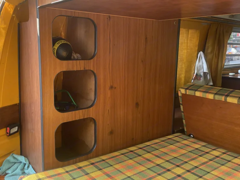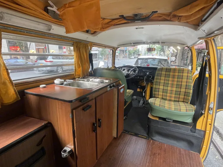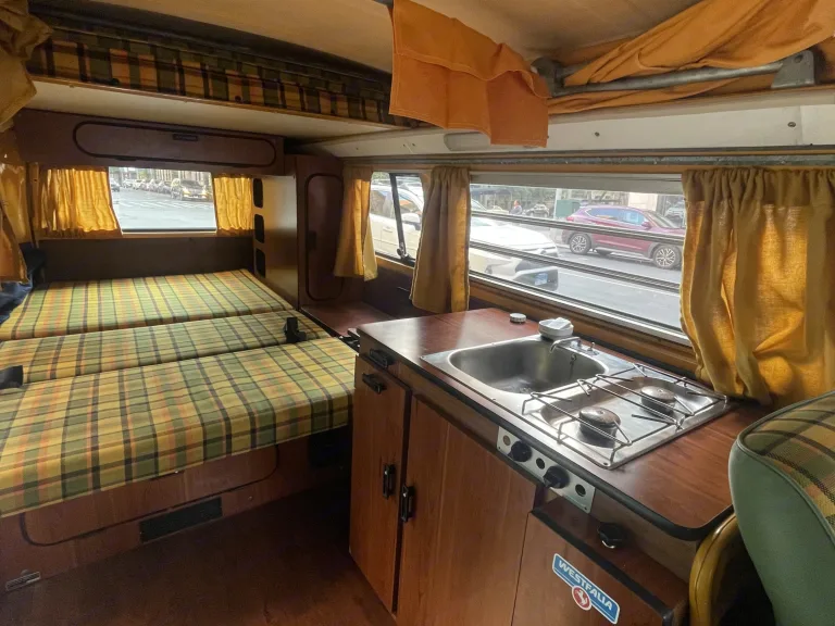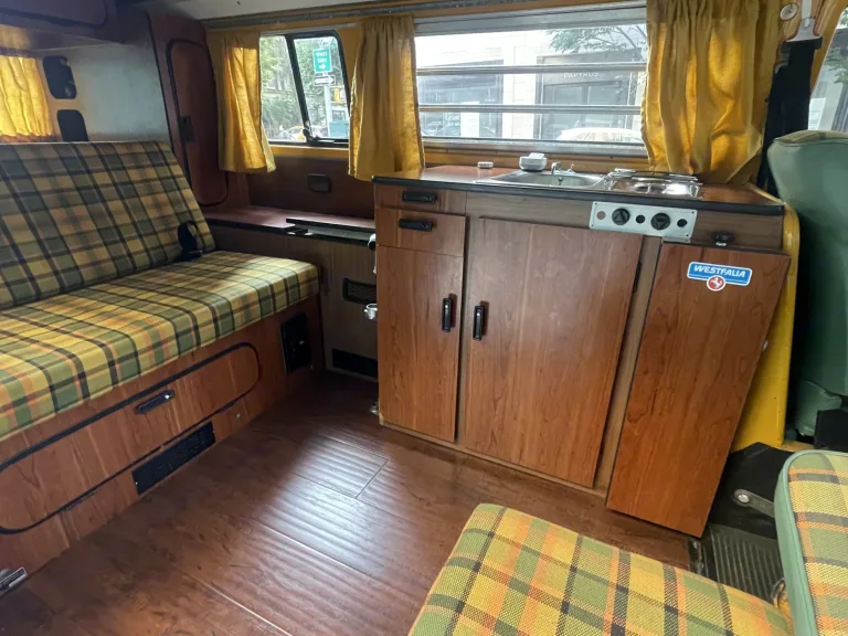 The Camper VW Van T2B in its ideal version to travel and sleep with four people. The "power love" of this vehicle is great, a warm welcome guaranteed."Our Vintage Westfalia Camper has working sink and one burner stove. Has new interior and the painting is gorgeous. The original engine (1600cc) type 1 has been fully restored this winter 2024.
