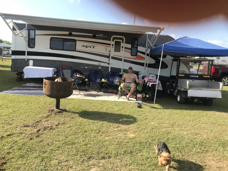 Welcome the Walley World Camper Rental!!! It has 1 slide in the kitchen area and the camper is very spacious. It had a front private bedroom and a queen bed that lets down in the garage area. There is a small recliner and a nice sofa. No carpet which we Love. It is a toy hauler. It will fit a large atv or motorcycle. It will not fit a side by side or golf cart unless tops are off. Pets are allowed with a deposit. Very kid friendly and it has a new upgraded 15K A/C. If you are looking for a nice pull behind camper, that’s roomy, comfy, and fun for the family.. then look no farther. You won’t be disappointed.