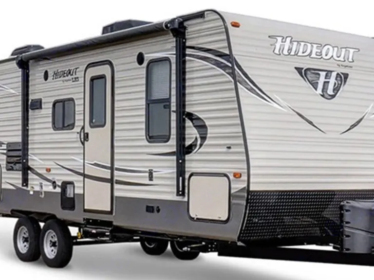 Here is the Keystone Hideout 212 LHS! The biggest in our fleet thus far coming in at 25 feet overall length and 4,530 lbs. dry weight with a tongue weight of 490 lbs. With the ability to sleep 8 persons and a cargo capacity of 2,600 lbs. there is plenty of space for the larger family or just the satisfaction of knowing you don’t have to convert the dinette every evening. There is a queen bed up front and oversize bunks in the rear. The features don’t stop there either. Along with the huge awning outside, there are outdoor speakers, and for tidying up on those long trips, a central vac system. Relax with the outdoor speakers while you grill out or relax around the camp fire. This really takes the rough out of roughing it! Our campers come equipped with Silverware, sharp knives, cutting board, plastic plates, bowl and cups, mixing bowls, electric one eye stove burner, electric griddle, coffee maker and other amenities. Please feel free to check out our website for more pictures and to see what is included at .