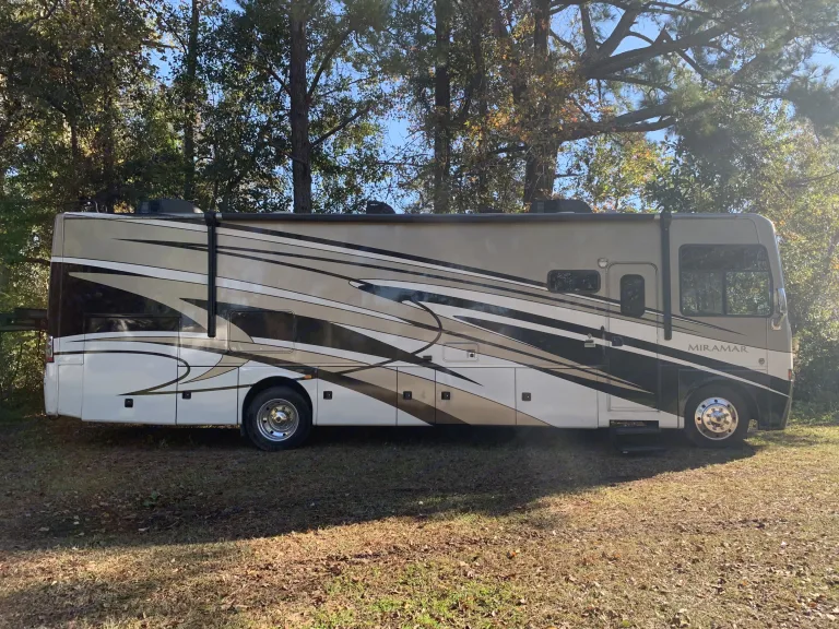 Full body paint Class A with outdoor kitchen, outdoor entertainment TV. Sleeps 8 with all amenities including 50 amp service, 2 AC's, Generator, Outdoor shower, King Master bed, Washer/Dryer, and much more.