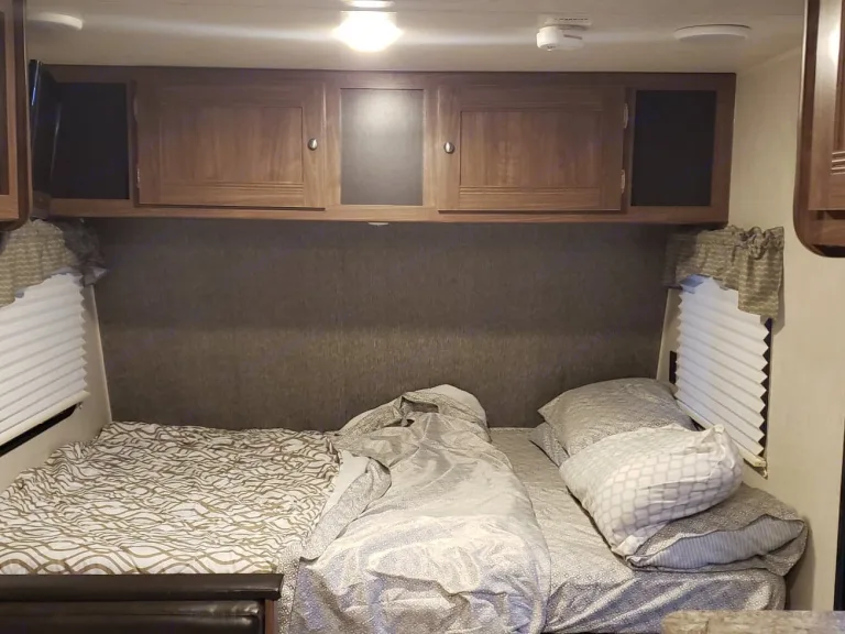 Just right for sleeping 5. Clean, cozy and comfortable! We take pride in making sure our camper is kept clean. We make many memories with our camper and enjoy camping any chance we get. Camper has a gas/electric refrigerator, microwave, two eye burner stove, tub, toilet, bunk beds, table makes a bed, double size bed, awning with led lights and We furnish coffees pots and cups. The camper has dishes and pots and pans. We do NoT provide bathroom towels. We deliver, set up and return to take down. Free up to 75 miles one way (150 round trip) and after that there is a charge per mile. If you ask us to deliver at a certain time and you make us wait more then 30 minutes there will be $50 fee added on at the end. We are super understanding and DO understand things happen.