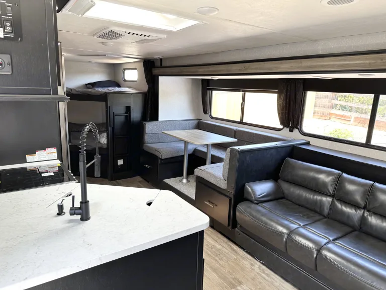 This turnkey rental is family & pet friendly, bring your groceries and we provide the rest! Ideal for families with a rear bunkhouse and a private queen bed in the front bedroom.Necessities provided: linens, pillows, dish soap & sponge, cooking utensils, pots & pans, reusable plates, bowls & cups, silverware, paper towels, coffee maker w/filters, cleaning wipes, toilet paper.Check out the add-ons for fun ways to enhance your trip!Delivery and set up only. We do not allow use on the dunes or beach.