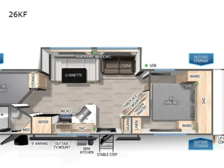 Proudly offered by Central Coast Camper, this brand-new 2026 Cherokee Gray Wolf 26KF bunkhouse travel trailer is the perfect home base for your next getaway. Designed with families and groups in mind, it comfortably sleeps up to 9 guests while offering all the modern amenities you’d expect in a new RV.Inside, you’ll find a fully stocked kitchen, cozy dinette, private master bedroom, and a dedicated bunkhouse that kids (or extra guests) will love. The spacious living area makes it easy to relax after a day of exploring, while the full bathroom, air conditioning, and entertainment system keep everyone comfortable.We make camping stress-free by offering full delivery and setup to Pismo Beach, Avila Beach, Morro Bay, and across the Central Coast. Just arrive, settle in, and start enjoying your trip — we’ll take care of the rest.At Central Coast Camper, we pride ourselves on providing clean, reliable trailers and exceptional service. Whether you’re planning a beach escape, wine country weekend, or a mountain retreat, this bunkhouse is ready to make your adventure unforgettable.Book today and let us bring the camping experience to you!What's includedWhat’s Included: Sleeps 9 with RV King Master bed, bunkhouse, dinette & sofa. Kitchen stocked with fridge, stove, microwave, cookware, dishes & utensils. Full bath with shower & toilet. AC/heat, TV, indoor/outdoor speakers. Awning, outdoor rug, camp chairs. Fresh linens for master, propane, hoses, cords & safety gear included.RecommendationsLocal Activities: Enjoy Pismo, Avila & Morro Bay beaches, Edna Valley & Paso Robles wineries, Lopez Lake, Montaña de Oro trails, and SLO’s farmers’ market. Tee off at Cypress Ridge, Monarch Dunes, Black Lake, Pismo, Morro Bay, Dairy Creek & Sea Pines golf courses. Explore Hearst Castle, Solvang, Pismo Preserve, and the Monarch Butterfly Grove (seasonal).Other things to note**Please Note**We do not deliver onto the Oceano Dunes.Delivery is available to all surrounding campgrounds and parks in Pismo Beach, Oceano, and the Central Coast.