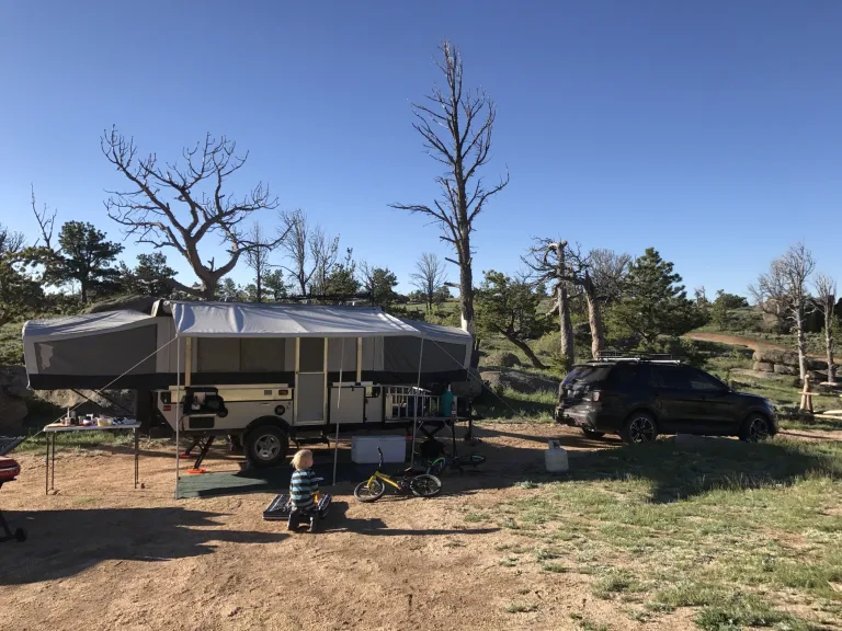 Awesome off road camper with full size tires so you can drive to more remote locations. Two king size beds and dining pull out that turns into an additional bed. Has everything you need to live comfortably for several days in the woods.