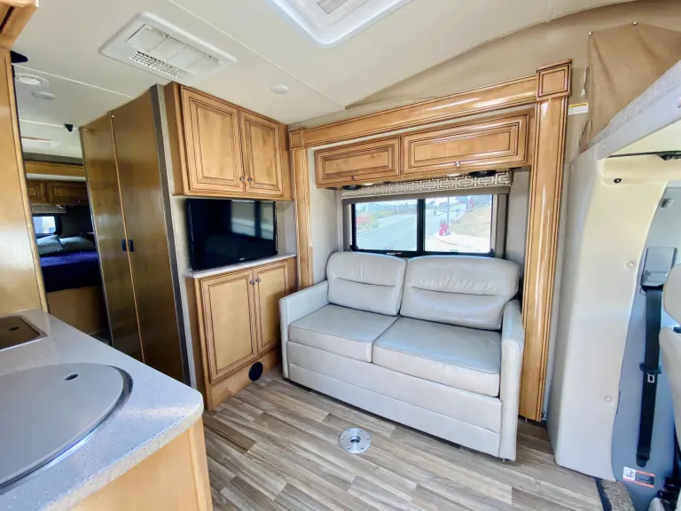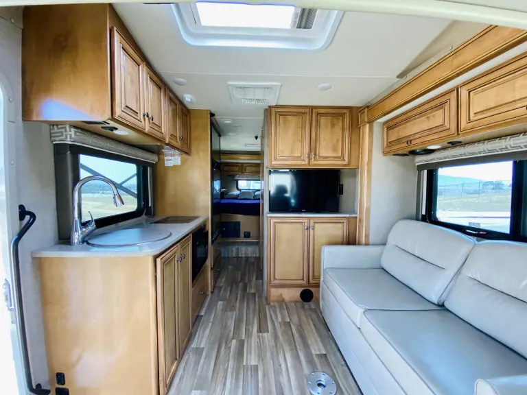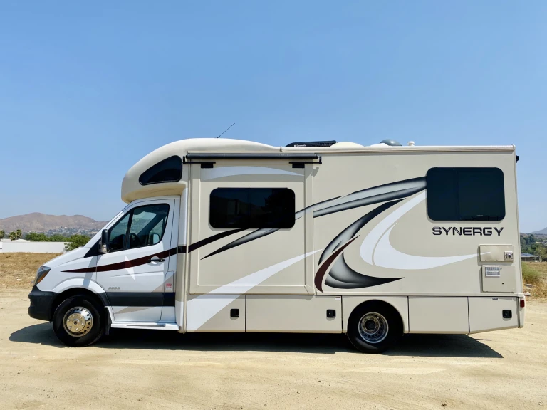 Start your next road trip with the class C Diesel Synergy SP24 motor home by Thor Motor Coach. This model features dual slide outs, and a cab over bunk, plus so much more!As you enter this model, above the cab you will find a 36" x 75" sleeping space for one adult or a child. The slide out located behind the driver's seat has a sofa bed and a removable pedestal table. At night the sofa converts into additional sleeping space. Adjacent to the slide you can enjoy watching movies at the 32" LED TV.To the left of the entry door there is a flip-up counter top, a round sink, an induction single burner, a microwave, overhead cabinet for dishes, and a refrigerator. There is also a handy closet for clothing or extra linens as it is opposite the full bath.The side aisle bathroom has a toilet, countertop extension, overhead cabinet, an angled shower, sink, and medicine cabinet.Located in the rear of this motor home is the bedroom with a rear slide out queen bed including overhead storage, and a 32" LED TV on the interior wall. The bed is a step up from the main part of the coach.What's includedWe include a clean bedsheet, a water hose and sewage hose. For add ons, we haveUnlimited internet (Hotspot): $7.99/nightParking on our lot: $7/nightSewage Dumping: $30 flat feeSewage Chemicals $5.00/bottleSeptic Safe Toilet Paper $1.50/RollRV Mobile Mechanic Insurance: $15/nightComfort Stuff (Bedding + Towels For Two People) $10/NightFood Stuff (Paper Plates + Cups + Napkins + Plastic Utensils - 114 pcs set) $10Cooking Stuff (17 PCS Pots + Pans + Serving Utensils): $10/nightKeurig (Coffee Maker) $3/NightBike Rack (Tow Hitch) $5/NightCamping Chair (1) $2/NightCamping Table (1) $5/NightLeveling Blocks: $10 for a set of 20 (Rental)Broom Dustpan $1.00/NightIce Chest (48 Quarts) $5.00/NightToaster $2.50/NightThank you!