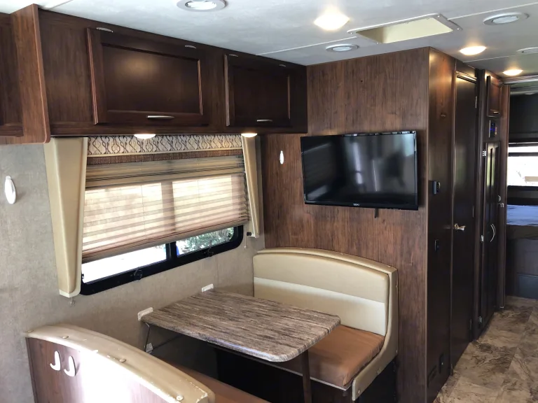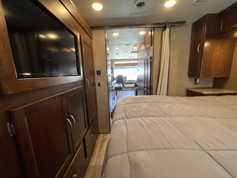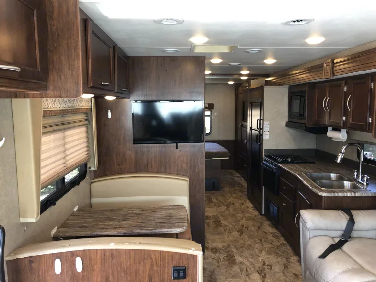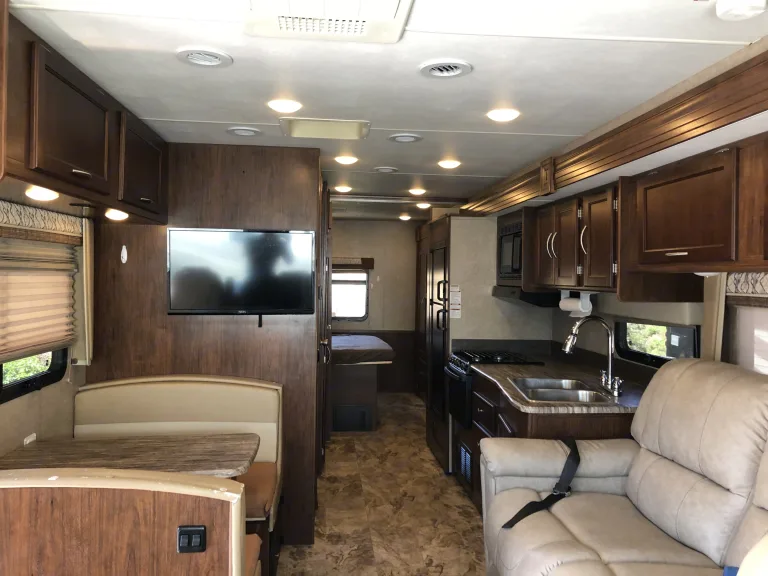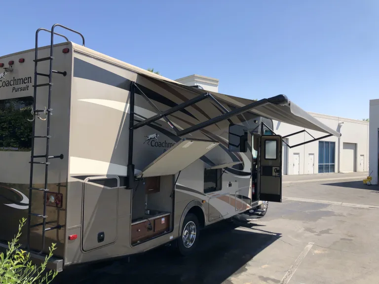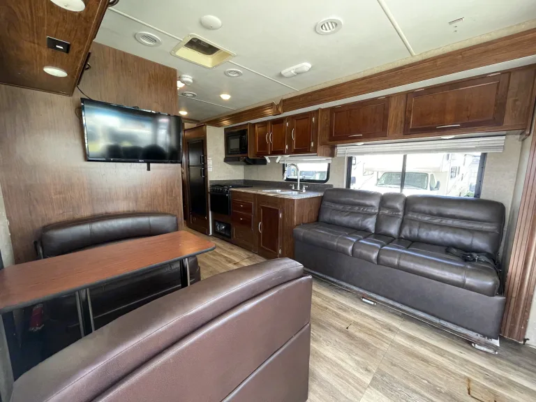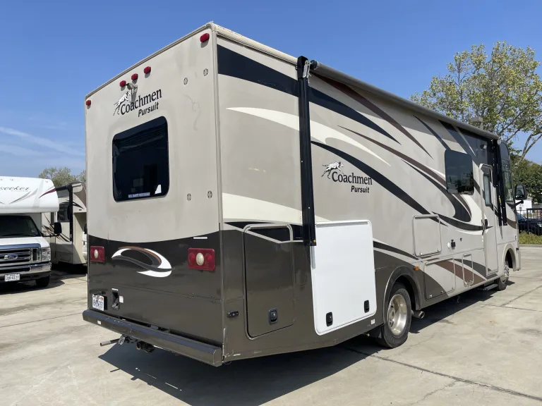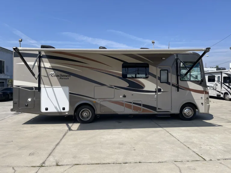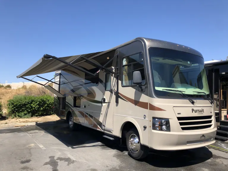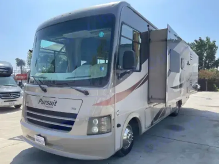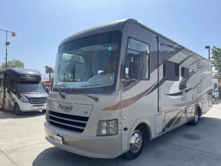 This Coachmen Pursuit class A motorhome has got you covered with everything needed as you travel. You will enjoy quality and comfort with all the conveniences of home at your fingertips. Model 30 FW features a full wall slide behind the driver side seat that provides more foot traffic space, plus more!Step inside behind the passenger seat and take a look back. There is a booth dinette with overhead storage along with a swivel arm TV for viewing to your immediate left. A drop down bunk over the cab area will readily provide more sleeping space when needed.Opposite the dinette find a jack-knife sofa with storage above. The kitchen is next and provides everything you need to cook and prepare food for your family while you are enjoying your adventure. There is a double sink, a three burner range, overhead microwave oven, and refrigerator. There are also overhead cabinets for dishes and things.A complete bath can be found mid-coach opposite the full wall slide which features a tub/shower, toilet, and vanity with sink. There is also a broom closet just around the corner outside the bathroom.A sliding door closes off the rear bedroom area from the kitchen and living space. Here you will enjoy a queen size bed with overhead storage along with nightstands. There is additional storage opposite the bed in wardrobes and drawers within the full slide, plus so much more!You will be beyond amazed!** There are no automatic leveling jacks on the RV but we will provide leveling blocks.**What's includedWe include Prepping, Sanitizing, A Clean Bedsheet, Two Rolls of RV Safe Toilet Paper, Disposable Plastic Plates, Forks, Spoons, Knives, Cups and Napkins, Sewage Chemical, Outside RV Cleaning, Sewage Hose, Water Hose, Electric Hookup, Full Tank of Fresh Water. We will send you add ons that we sell/rent after booking - thank you!!Other things to noteWeekday Pick-Up Times are appointment based only from 9:30am-3:15pm. Weekend Pick-Up Times Self Check-Out (message for details). Return times 9:00-10:00am. Late Return 10:00am-1:00pm-$65. 1:00-5:00pm-$120. After 5:00pm $120+$45/hour