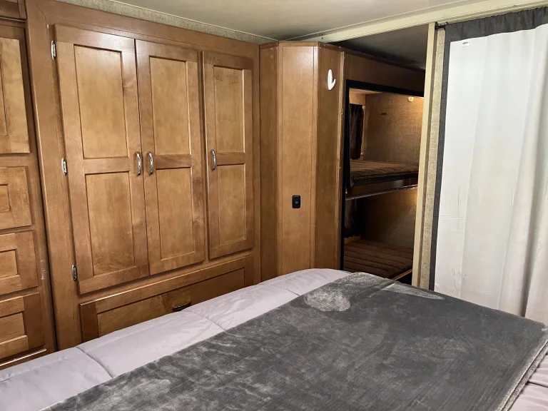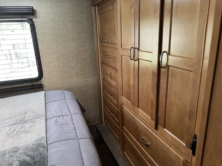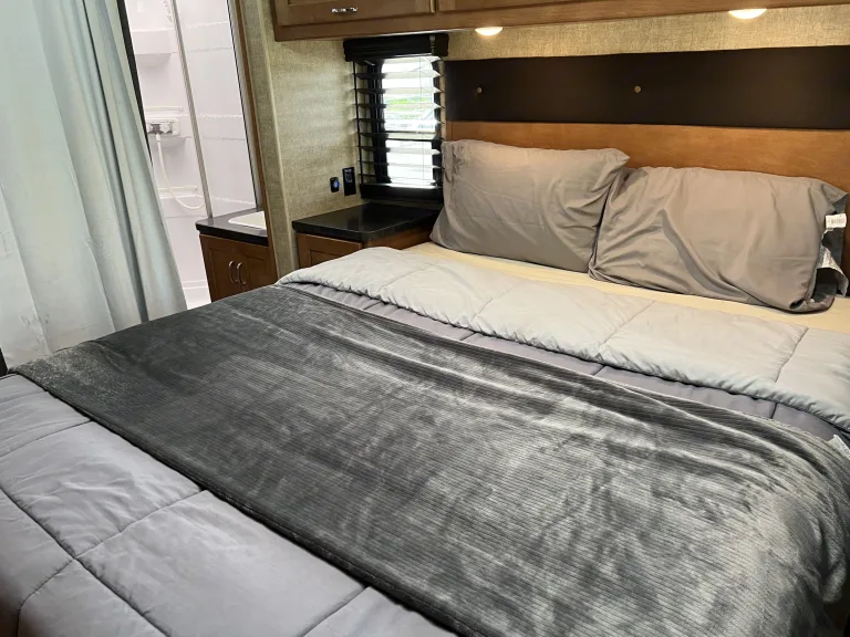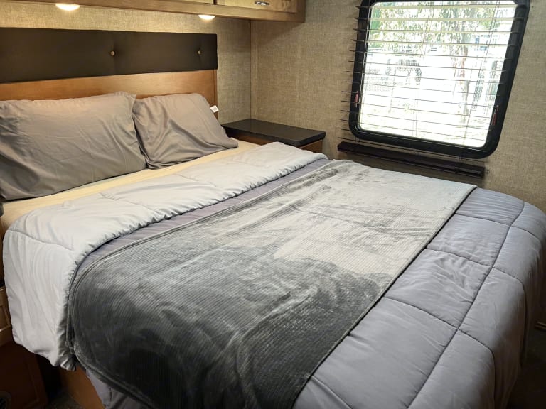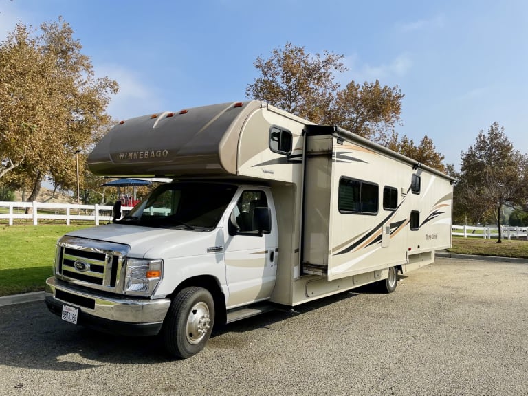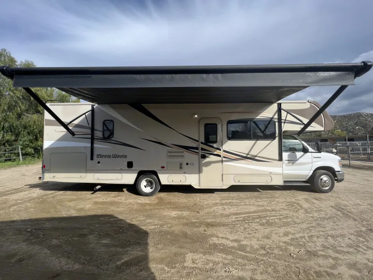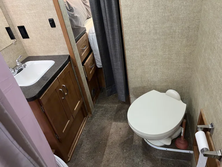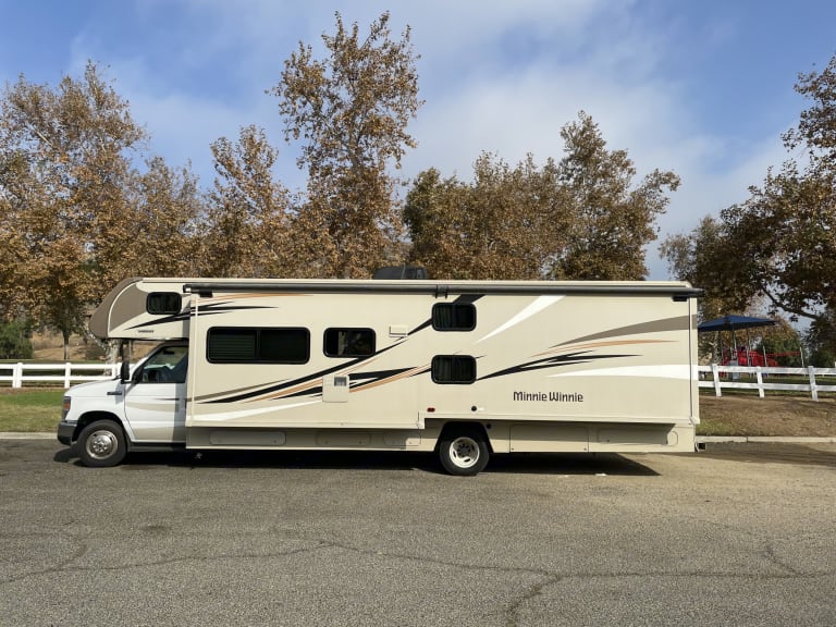 Spacious BathroomThere are endless possibilities with this Minnie Winnie class C gas coach. Model 31G offers you a spacious interior thanks to a full wall slide along the driver's side, 28" x 73" bunks for the kiddos, a rear bedroom, and total sleeping for eight! In the rear bedroom you will find a queen bed, chest of drawers and a wardrobe! The spacious bathroom has a 32" x 32" radius shower, toilet, and sink.Whether your adventures take you near or far you will want a Winnebago Minnie Winnie class C motor home. With each model you can enjoy the time that it takes to get to your destination as well as the fun that awaits you. Inside you will find easy to clean vinyl flooring throughout, tinted windows, a USB charger near the dinette and in the bedroom, as well as a 32" Hdtv with DVD player. All of your gear can easily be stowed in the large lighted trunk storage compartment. There are several optional package upgrades available to help you customize the perfect family-friendly model for you. What are you waiting for? Now is the time to rent this Minnie Winnie!What's includedWe include Prepping, Sanitizing, A Clean Bedsheet, Two Rolls of RV Safe Toilet Paper, Disposable Plastic Plates, Forks, Spoons, Knives, Cups and Napkins, Sewage Chemical, Outside RV Cleaning, Sewage Hose, Water Hose, Electric Hookup, Full Tank of Fresh Water. We will send you add ons that we sell/rent after booking - thank you!!Other things to noteWeekday Pick-Up Times are appointment based only from 9:30am-3:15pm. Weekend Pick-Up Times Self Check-Out (message for details). Return times 9:00-10:00am. Late Return 10:00am-1:00pm-$65. 1:00-5:00pm-$120. After 5:00pm $120+$45/hour