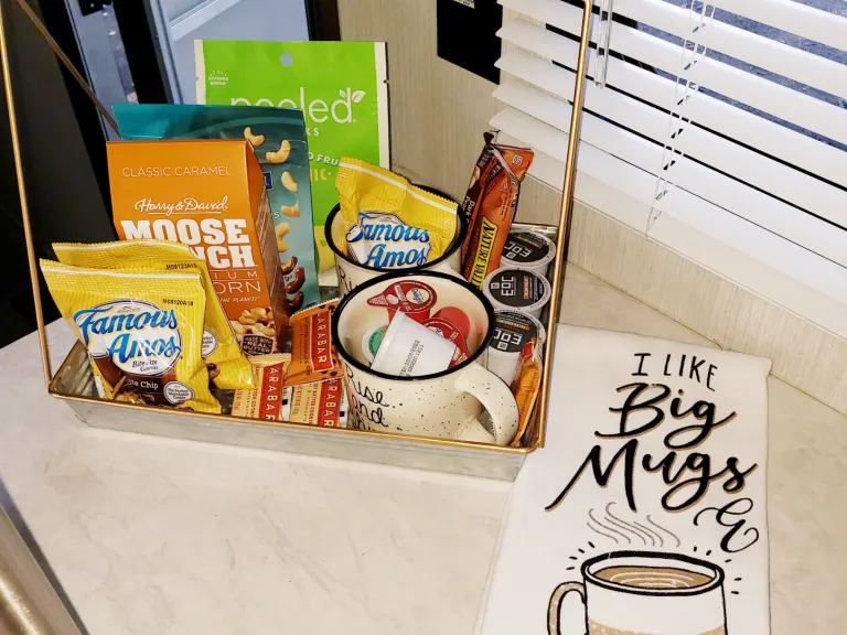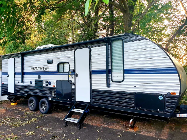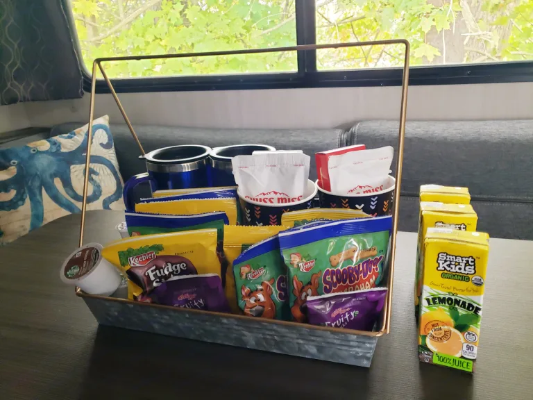 -Depending upon the season your crew will always be greeted with a Smores or Cocoa kit in the camper kitchen. See below for other extras included. We aim to lighten your load so you can travel happy!What's includedA linen package, camp chairs, beach toys, pack and play (and baby monitor so you can picnic while watching little ones sleeping or fur babies), and even an electric drill to make your set up easier are available upon request and free of charge! -Enjoy having a Keurig (and assorted K-cups) or coffee maker for your morning coffee, grill ware, and picnic supplies and a container of sample size toiletries always available for your use…forgot a toothbrush, toothpaste, shampoo? The Wolf has you covered! Other things to note-We prefer renters stay where there is dumping onsite or are able to get trailer to a dumping site to empty, but in the cases where this is not feasible and we can empty the grey and black water for you there is a $200 fee for this service.