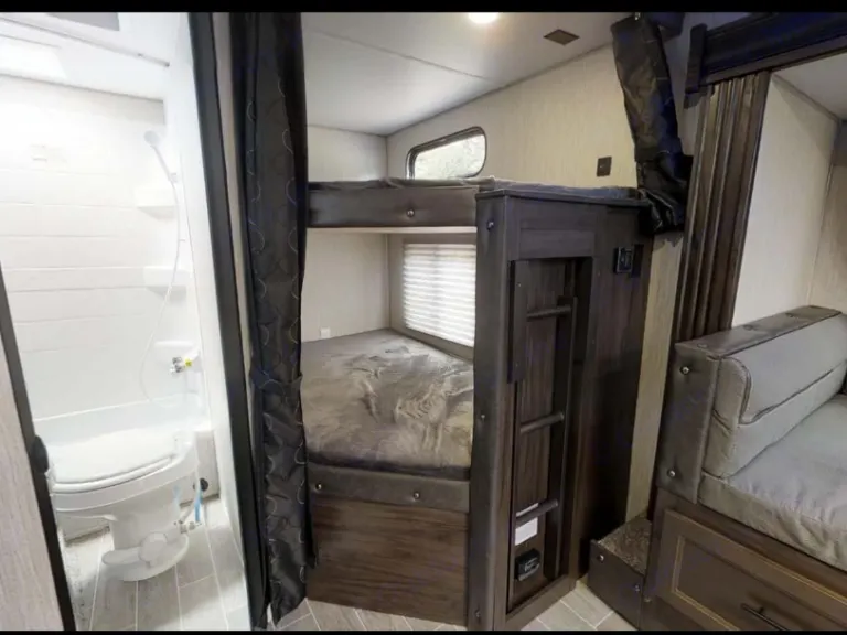 A camper your crew will love! Stylish bunkhouse that sleeps 8- 10 with double entry!