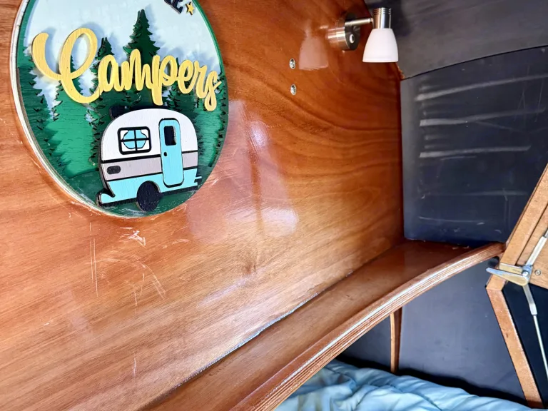Check out our kit built teardrop camper! We enjoyed the build and now can't wait to see where it takes you. Start planning your 2026 travels now before our calendar fills up.If you've got a tow hitch, you can hook up and hit the road. Made of wood layered in fiberglass, the trailer and camper combined weighs less than 600lbs. Just about any vehicle is able to transport and maneuver our camper with ease. No prior towing experience is needed.You’ll have everything you need whenever you pull over to explore the great outdoors, cook a meal or get some rest. Inside, you’ll find a queen-sized mattress, complete with plenty of pillows and blankets that make up your own cozy den. Out back, the galley kitchen features a spacious countertop with a stovetop, cooler, pump sink and all the kitchenware you’ll need to prepare a real meal with a different view every time.Whether you're looking for a quick weekend getaway or a longer adventure, any parking spot can turn into your home base. We love getting off the grid and enjoying the simple things in life. We designed our camper for likeminded adventurers.Our camper is only 14ft long including the trailer tongue, which is shorter than most vehicles. It's also narrow, at just over 5ft wide. This, along with the ability to maneuver the rig by hand when unhitched since it's so lightweight, allows for you to use our teardrop at many campsites that are described as tent only. Always check with the camp host, but know that it's possible and usually accepted!Enjoy the experience of camping without…• setting up a tent when you’d rather be doing anything else