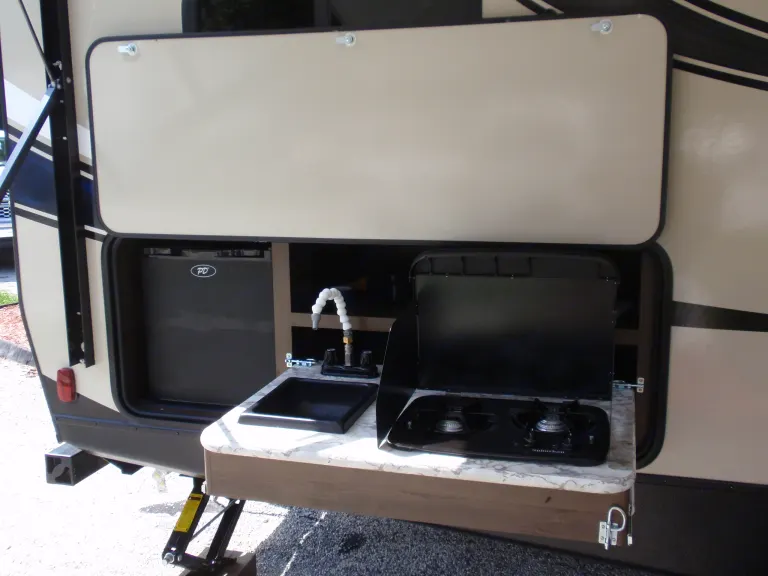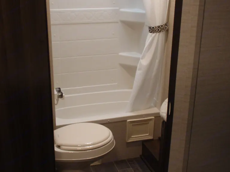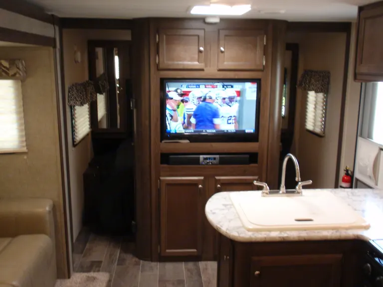 The camper includes a 2EA 32" flat screen TVs with a HD antenna (cable ready), AM/FM radio with bluetooth and both indoor and outdoor speaker.Bathroom: