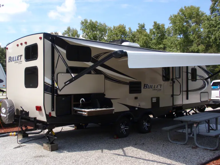 (Set up and delivery required)(See end of description for details), all you have to do is give us the address!! We will deliver, set up and pick up, all you have to do is show up and enjoy your stay!!!This 2018 Keystone Bullet has all the comforts that you would want while vacationing with your family or friends, with its plush interior. This awesome camper displays a spacious kitchen, with stove, oven, microwave, refrigerator along with ample counter space. Most of the items you will need in the kitchen will provided.Accommodations: