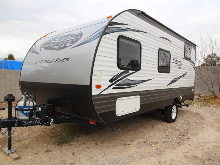Cozy travel trailer with 1 Full Bed, 2 bunks, and a convertible dining room table/bed. It has a mini-fridge and freezer, and propane stove-top with two burners. Toilet, shower and small tub. Storage under stove, under dining benches, and under full bed, as well as some overhead cabinet storage. TV, small coffee maker, and small crock pot included. Trailer has antenna, radio, and DVD player. Pet-friendly. Comes with attachable enclosure for outside area to simulate screened porch. Pick-up only in North Las Vegas, NV for travel out of town, but may be able to deliver and set-up locally. Trailer weighs about 3,000 lbs with no water. Can be towed comfortably with Toyota Tacoma (3500lb tow limit). **Weekly rate: $420 and Monthly Rate: $840**
