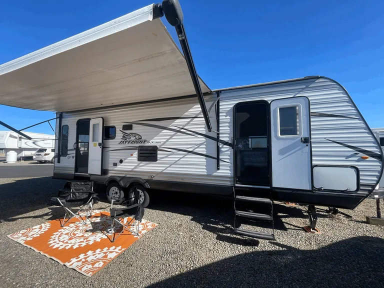 This Jayco Jay Flight Trailer is the perfect place for your weekend getaway.