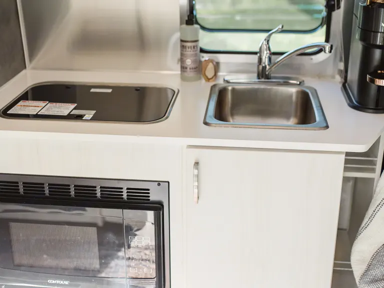Dream of hitting the road and camping in an airstream? We know the feeling!This 2022 airstream is shiny new and fully outfitted with all you’ll need to camp plus the comforts of glamping with 2 beds with memory foam mattresses (1 converts from the kitchen table), TV, AC and heat, a stand-up shower.There’s a small but mighty kitchen (with electric fridge + microwave) + nooks for storage throughout. Plus a retractable awning with LED twinkle lights + outdoor shower!A couples adventure or a family affair, we’ve thought of it all to make sure you have the best time Away In An Airstream. Pack your clothes + food — we’ve got the rest!You can tow yourself with with a SUV or truck to a destination of your choice or we can deliver for an added fee and set up the Airstream within a 80-mile radius (you will book the reservations at an area campground — ask us for our favorites!). Please inquire about cost and availability for farther delivery requests.What's includedModern yet homey, Bambi is a perfect trailer for the seasoned or newbie RVers.You’ll enjoy the creature comforts of an RV with elevated add-ons including a Keurig machine, natural cleaning supplies + toiletries, camping chairs & table, fresh linens + towels, Yeti coffee mugs and JVC Stereo with Bluetooth.In the kitchen you’ll find: