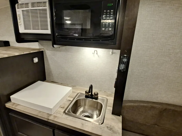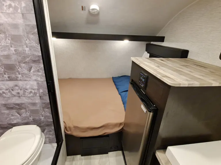 *** "No Install" brake controller is available! Tow safely without the need to have a brake controller installed in your vehicle.Explore the Northern Oregon Coast or the Mount Hood National forest in this camper perfect for 2. The queen size bed sleeps 2 people and a convertible dinette sleeps a 3rd guest. All beds accommodate people up to 6’ 4”. The camper has a 2 burner stove, sink, refrigerator, microwave, air conditioner, and combination shower / toilet.If you aim to boondock it carries 24 gallons of fresh water and has 2 deep cycle batteries that should last 2 days. Optional solar panel or generator available to extend your range even longer. The camper has numerous USB charging portsA large SUV or any Pickup can pull this trailer comfortably. An adjustable hitch and ball will be provided and will be optimized to you vehicle's bumper height. Your tow vehicle must have a max tow capacity of 4000lbs or greater and a Class 3 hitch receiver.The RV has electric brakes and must be towed by a vehicle with a brake controller. If your vehicle does not have a brake controller an “No install” Echo wireless brake controller is available for use.In addition to the Camper we provide;