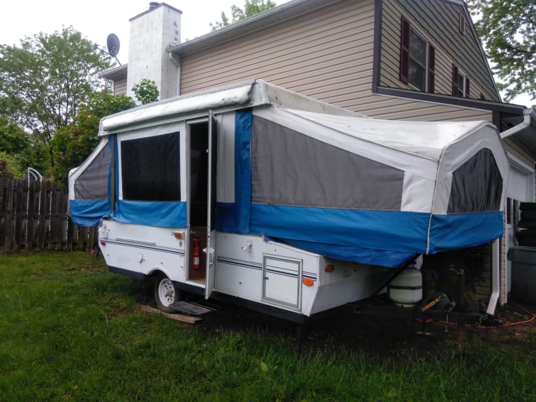 2003 Forest River, Flagstaff 206ST 10ft closed 2060lbs, sleeps 6, small fridge, 3burner stove, roll out storage, inside lights, lots of power outlets. This does not have a bathroom. clean, good condition, great for camping, fishing or hunting trips, small families, extra sleep space for visitors, easy set up, we will walk you through the entire set up and fold down. I have done it myself various times so you don't need lots of strength. It also has an awning and outside shelf. The shelf is great for phones or a speaker. There is an outside outlet which is conveniently close to the small shelf. The camper is older and lived in, but also comfortable and affordable. I hope you enjoy it as much as we do.What's includedMattress pads, a fan, coffee maker, pots, pans. They are stored away and easier to leave in. Also a first aid kit, bug spray and a can of Lysol and hand sanitizer. RecommendationsJust enjoy it! Other things to notePlease don't smoke inside the camper. Or jump on the step by the smaller bed. Does not have a bathroom