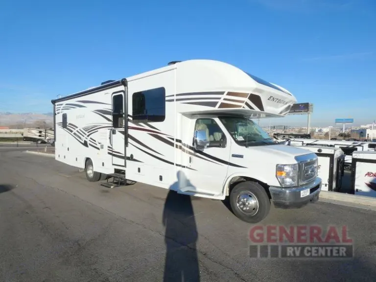 All of your road trips will be enjoyable in this Entegra Coach Esteem class C model 30X. The interior is super spacious thanks to the full wall slide along the driver's side in this already 100" wide unit. There is a private rear bedroom featuring a queen size bed with plenty of storage space here and throughout. Additional sleeping can be found on the front full cab-over bunk. With this Esteem model you can drive until your hearts content, then stop when you please for a meal, some sightseeing, or for a relaxing night. Maybe you will decide to stay for a day or two before moving on. You are sure to be comfortable and entertained in this full featured unit.This Brand New wonderfully built coach is on a Ford E-450 chassis with a 305 horsepower engine! With enough beds to sleep up to 8 people you can take the whole family along on your trip! This coach features a residential 12 CU refrigerator, on demand hot water, Led lighting throughout, 3 TV including the outdoor entertainment center, 2 AC units that are sure to keep you at a nice a cozy temperature, a beautiful awning, and a very nice sunroof in the main cabin. Be sure to let us know how we can help make your next adventure possible!