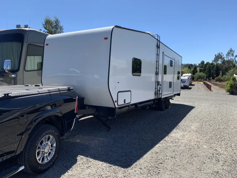 2017 32 Ft. Toy Hauler. 3 queen beds with a full size shower, outdoor shower, large 9'cubic refridegator, pantry, clothing storage for 4 people, outdoor speakers, automatic awning, and 4 season rear door entry.