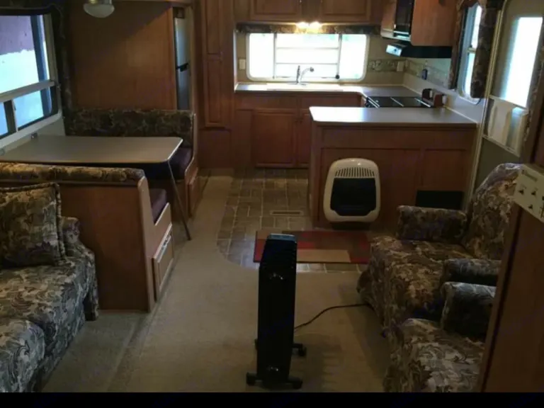 Hi! We hope you're looking to do more with your family like we are. We really fell in love with the big wrap around kitchen and private queen bedroom. The slide out leaves lots of space for the family to spread out and relax.What's includedCamping chairs, dishes, extra portable stove, towels, sleeping bags, sheets, pillows, cards, out door games, toiletriesRecommendationsThere are many local campgrounds in the area. Other things to noteNo smoking. Must wipe down pet if wet or muddy before getting into trailer and keep shoes off inside the trailer. There is a vinyl floor area to keep shoes and dry pets and paws.