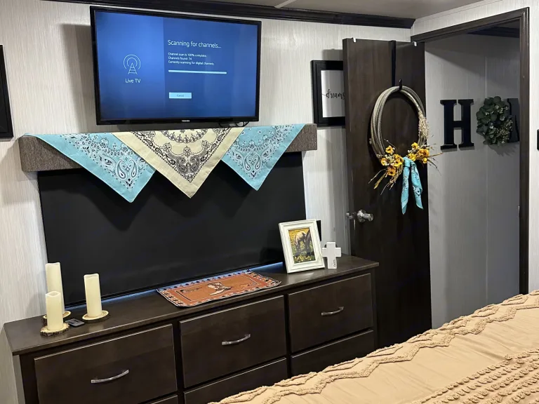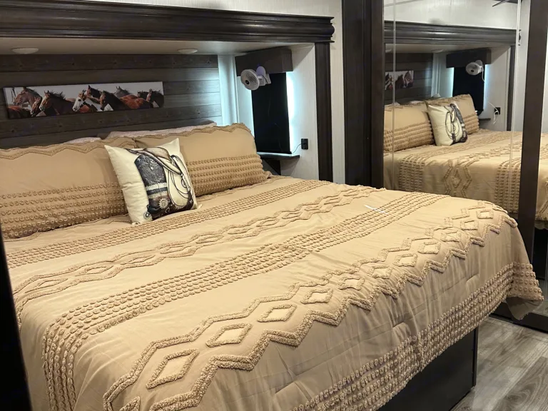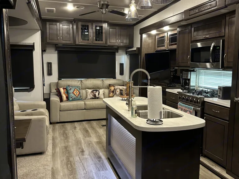 Fully stocked brand new 5th wheel. Go camping in style and comfort. Large and spacious, you won’t feel crowded in this camper. Modern decor, comfortable couches, recliners and king bed in the master. All you have to do is bring your food, drinks, and clothes. Everything else is in the camper and will be ready to go when you get to your campsite including use of our gas grill. Delivery and setup is required for this camper.We specialize in rentals for Horse Shows in the DFW area as well as OKC area. Message us for special "Show" rates.What's includedPretty much everything you need including pots, pans, dishes, towels, fresh linens, camping chairs, small gas grill. Other items are available for an additional fee.RecommendationsWe recommend booking in advance. Finding a camping spot during the summer months can be a challenge. When looking for a spot don't forget to look at local RV parks, some of them are a great place to visit to get away for the weekend.Other things to notePet friendly (additional fees apply)