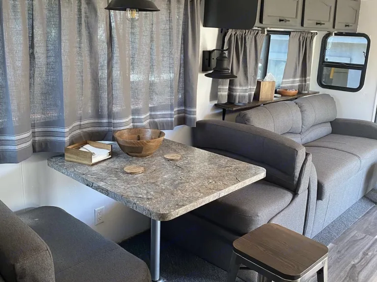 Freshly remodeled 35’ motorhome. Enjoy your stay in this tastefully updated home on wheels. All the comforts of home include fridge/freezer, microwave, keurig coffee maker, 3 burner stove with pots and pans, 2 tv’s, shower with separate toilet and vanity. Queen bed in the rear, dinette makes into a twin bed, pull out sofa makes into a twin as well. Bedding included. Heater for those cooler nights controlled by duel zone thermostat. Bluetooth stereo with speakers through. Moving to the out side the amenities include propane bbq, chairs and fire pit. No hookups? That’s ok. Our motorhome has an 80 gallon fresh water tank and a generator built in. I will deliver locally and set up so all you have to do is enjoy your vacation. What's includedFresh linens, pots & pans, disposable flat wear, camping chairs, fire pit, outdoor stereo. Outdoor foldable table. RecommendationsGreat camping at lake casitas. Bring your bikes and enjoy a ride with the family. Explore all that lake casitas has to offer. Play grounds for the little ones, great fishing and an amazing cafe. Enjoy evening is by the fire pit roaring marshmallows and making memories. Other things to noteMotorhome will be delivered and set up at no extra fee. No smoking. No pets. Walking on roof is not permitted.