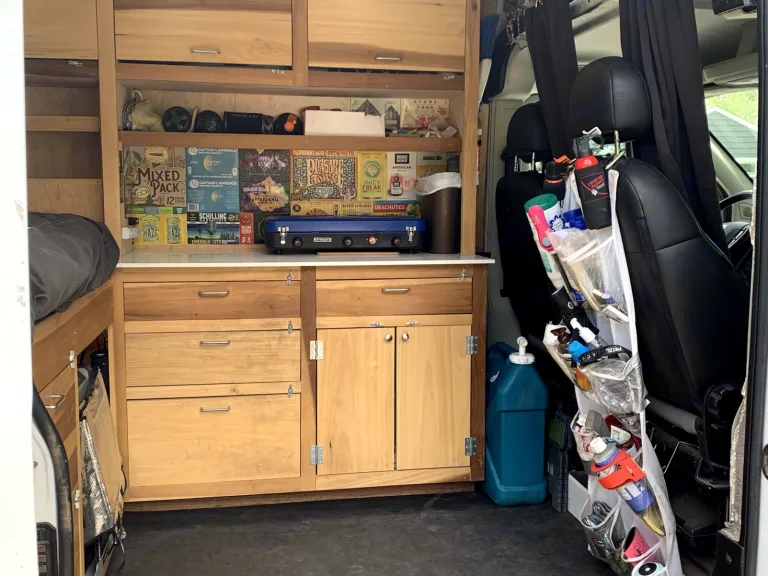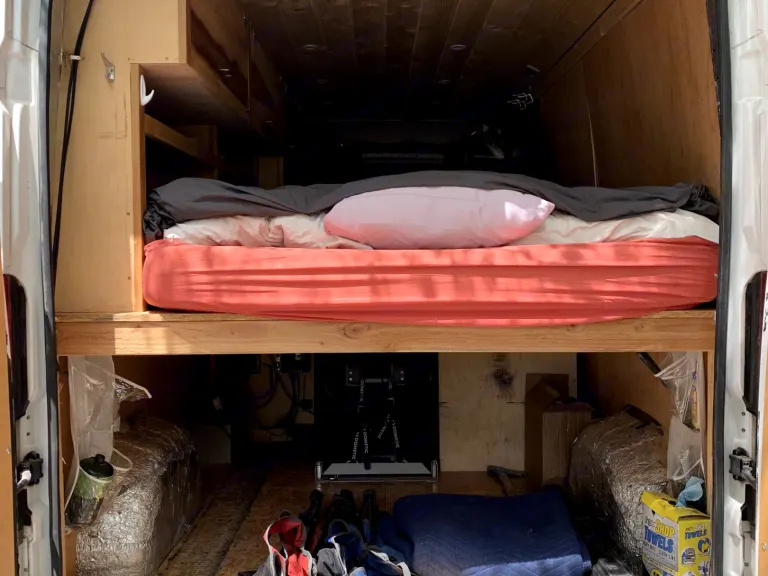 ** Description **This 2017 Promaster has been my full time home for the past year, but I've settled into being somewhat more of a homebody, and it's available for your adventures now too!The van has all the necessities! Solar, 1000W inverter, fridge/freezer, an extremely comfortable queen bed, propane stove, 7 gallon water tank, and a ton of storage. If you're coming from backpacking or car camping, this will feel like an awesome upgrade.The van is 2WD but has all terrain tires and is quite capable.I would like to aim for both pickup and return to occur at a similar time, ideally midday (12-2pm). For example, a 3 night rental is really a ~72 hour rental. If you would like to pickup the van earlier or return it later, there will be a slight up-charge, as it will preclude me from renting the night before or after to another party. What's includedLinens and all kitchen necessities are provided! Two camp chairs, a camping table, and an axe for around camp as well.Some fun stuff, like a slackline and camping gear, are up for rent too if you'd like to use them.