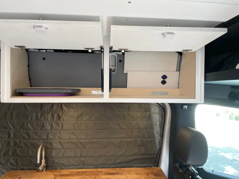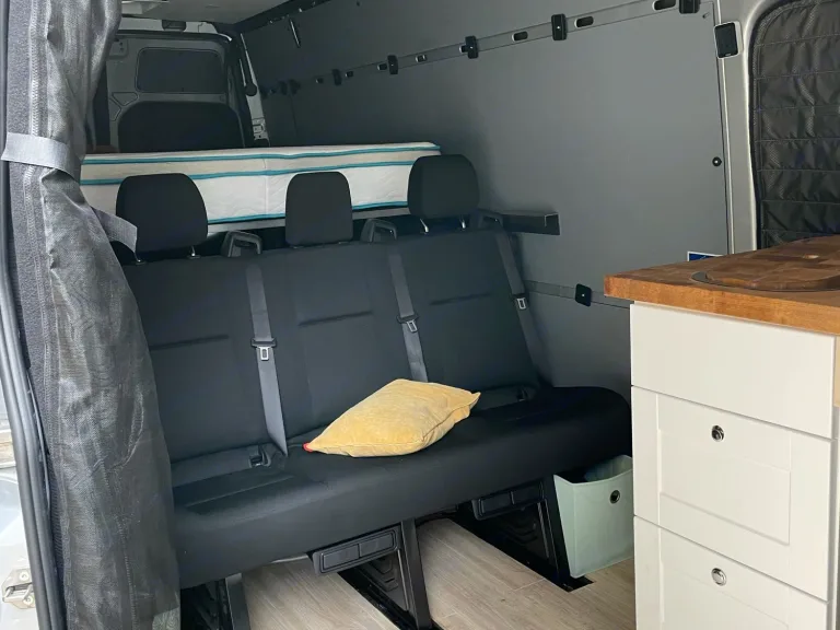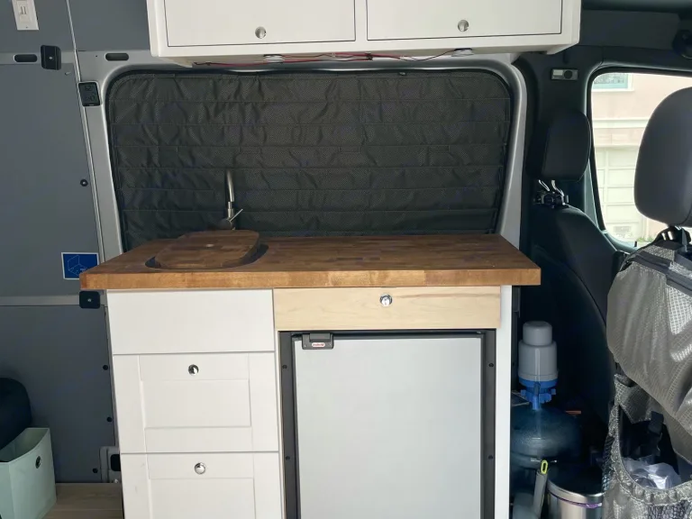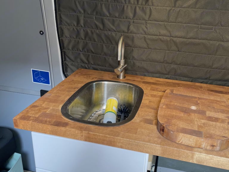 New sprinter van that has been converted into fun adventure van! Has fridge, sink, running water, solar, heater, & outdoor toilet. Everything you need to get away. We installed car-seat compatible seating in the back, so our toddler could safely ride along - Latch and seatbelt can be utilized.Queen bed in back, and cabbunk bunk beds (installs on front seats) will sleep up to 4 - 2 adults and 2 kids. Option to sleep a fifth child/adult on cot in “kitchen” area.Please note - cabbunk bunk beds are not permanently installed and will require set up by renters.What's includedoutdoor table