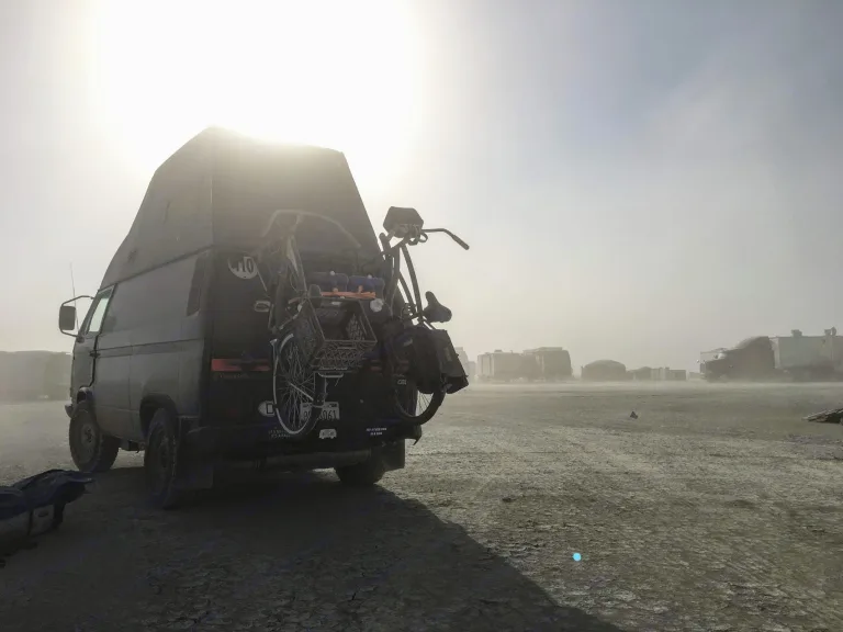 The van includes a diesel heater, hot water shower, outdoor stereo, fridge, alcohol stove, bike rack and more!Note: