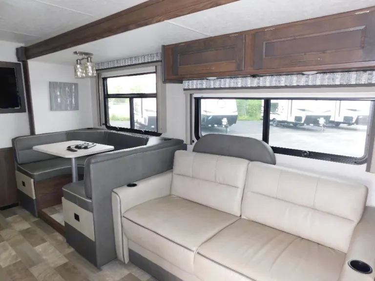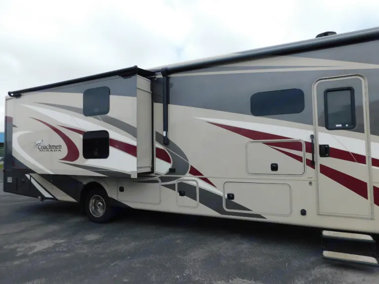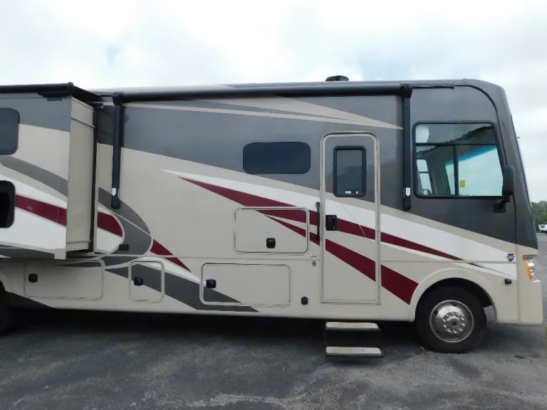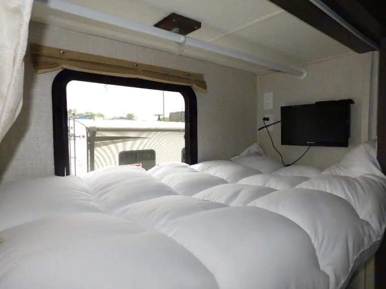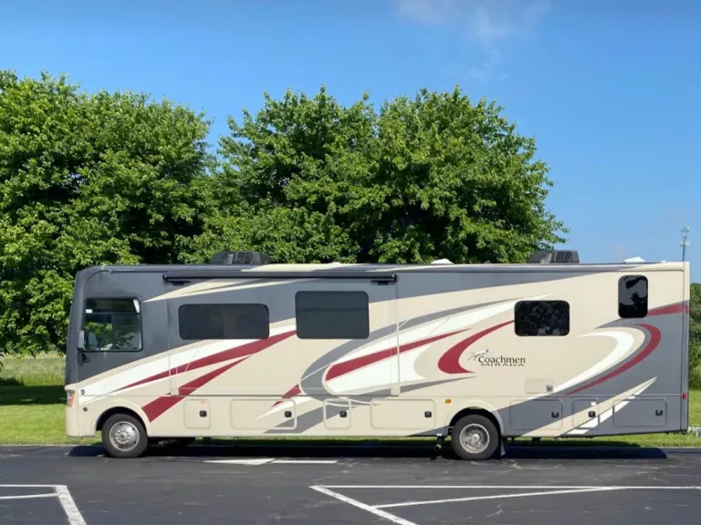 Make some memories in our amazing motorhome, perfect for taking your family anywhere while having all of the comforts of home. This coach can safely accommodate 8 passengers and sleep up to 10 people. It includes a master bedroom with queen sized bed with pillow top mattress pad, 1.5 bathrooms including a private master bathroom with a spacious shower! Also included are a set of bunk beds with individual DVD players, a full-sized drop-down bunk, pull out sofa bed, and convertible dinette bed. This RV is equipped with multiple tv's including an exterior TV, a residential refrigerator/freezer, oven/stove, microwave, kitchen sink and power awning. Two large slide outs offer very spacious living.For the driver: rear view and side view cameras, tire pressure monitoring system, cruise control, heated mirrors, and an automatic leveling system.Delivery may be accommodated by request.What's includedIncludes Dishes, Silverware, Utensils, Pots & Pans, Electric Tea Kettle, Toaster, Linens (excludes pull out sofa and dinette), Magnetic Bulletin Boards, Freshwater & Waste Hoses, Power Adapters (50 Amp, 30 Amp & 15 Amp), Coax Cable, Telescoping Windshield Squeegee. 4 Camp chairs, 18" weber BBQ grill, DVD player,Other things to noteNo Smoking.