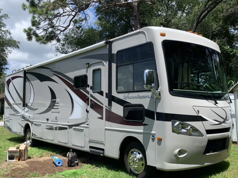 Beautiful Motorhome set up like a one bedroom apartment that sleeps up to 8 people comfortably. Full kitchen with double sinks, microwave, three burner stove, and oven. Stocked with all kitchen essentials. Large dining room table can be converted to queen bed. Queen bed lowers over the drivers seat. This area can also be used for extra storage space as you can lower it as much or as little as you like. Sofa converts to queen bed as well. King size bed which is not common in most RVs this size. His and her closets in the bedroom as well as extra storage over the bed. Comfortable ride with all the comforts of home including a washer and dryer. Outside kitchen with mini fridge and sink as well as a 32’ tv. RV gets about 10 miles per gallon depending on road conditions. Enjoy your next vacation in style! Pets are welcome but no smoking. Cannot deliver but you can leave your vehicle in my yard during your rental period.Inventory: pots and pans, plates, cups, silverware, knife set, utensils, spice rack, toaster oven, coffee maker, coffee filters, toaster, blender, hand mixer, towels, sheets, comforters, pillows, salt/pepper grinders, windshield washer/squeegee, fire stick to stream tv, measuring cups, portable bidet, tool set, first aid kit, small axe tool, lantern/flashlightFree NetflixRV is located at:1 Pine Circle Ct