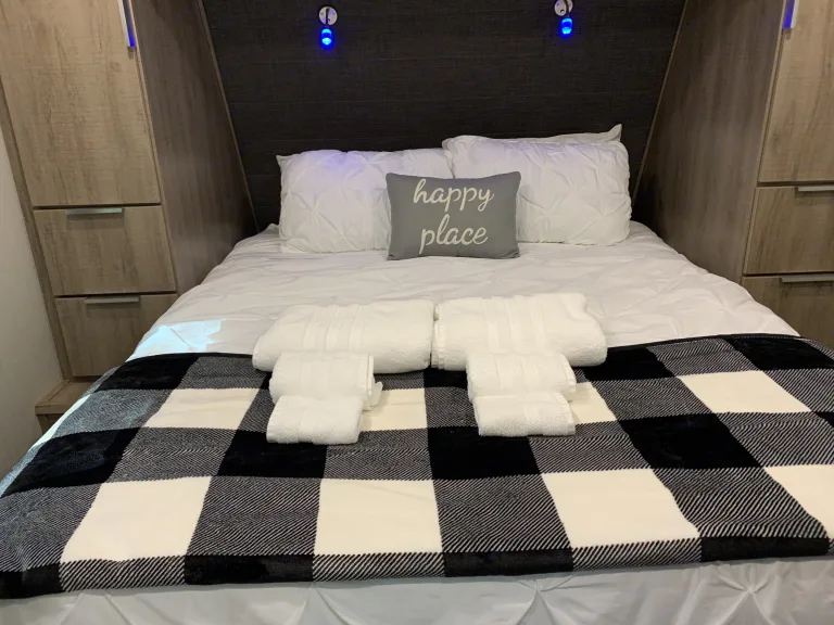 Plan your next trip in our camper. It is perfect for 2 people and has all the amenities you could possibly need. Our camper provides a comfortable experience, because it has everything from a residential 60 x 80, 10"queen mattress, 2 wall huger recliners, fire place, rear kitchen with ample countertop space, large walk in shower and more. It's perfect for anyone who wants to find adventure and comfort.Featuring beautiful, interiors, you'll be able to sit back and relax. Come and experience the comfort and style of renting one of our camper rentals.If you're looking to get away from it all, look no further than our award-winning camper. Whether it's a weekend or full vacation, our camper is the perfect way to explore.Grab your gear and get ready for an adventure! Our Camper Rental is the most affordable way to sleep under the stars.Ready for the trip? Choose the Zebra. Reserve todayWe proud ourselves in renting out clean, efficient campers.