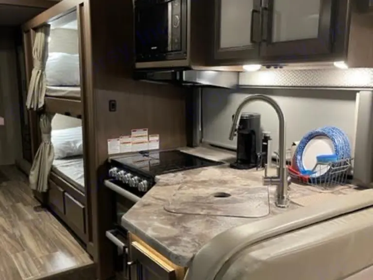 This RV is loved by two busy families. We invite you to share our brand new RV with us, when we can’t get away. It is an ideal set up for a big family or group of friends to share and enjoy, 2 queen beds and bunks for the kids! It easily accommodates our group of 7, with room to squeeze in another. Set up and Delivery are available or drive away to your favorite destination. Tailgating welcomed! We love our sports, too!Renters can request pick up and drop off at airports, delivery and set up to your campsite, early pick ups and late drop offs, availability and pricing will vary.