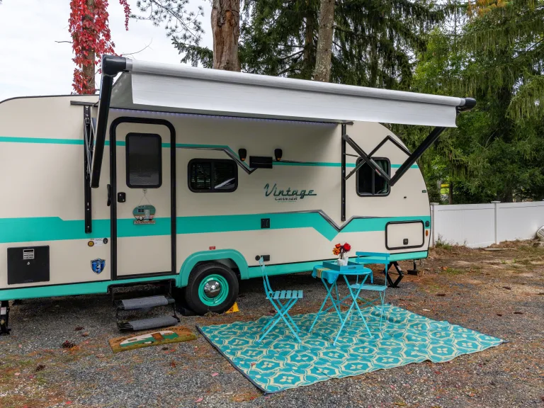 Wine glassesPlenty of indoor storage and outdoor inclusions such as a Weber 19 inch kettle, folding canopy tent, tent, roll out carpet, picnic table cloth with clips, bistro set and Coleman foldable chairs.