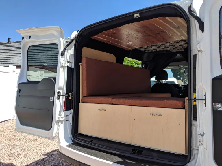 This brand new, custom built, RAM Promaster City is ready to take you on your next adventure in style! With sustainably sourced Maple construction, California Cedar ceilings, and custom fabric wrapping on display you'll feel as though you're rolling off in a luxury hotel. With room to sleep 2 and seat 4, this Promaster City is the perfect vehicle for your get away. Take advantage of the hideaway solar panel and keep all your devices charged throughout your trip no matter where the road takes you. Open the rear doors and find the slide out kitchen ready to go! Hotdogs in the trees, burgers at the beach, veggies in the mountains. It's all at your fingertip with Down By The River Production's latest offering.*This van is also FOR Sale! visit for more info.Down By The River Productions is the go-to van builder in Southern California for custom, detail oriented builds. With an emphasis on custom woodworking, DBR builds every van by hand and from scratch. No two vans are exactly the same, giving each customer a unique #vanlife experience. So, whether you're ready for your own van conversion or just want to live life on the road for the week, Down By The River Productions is your SoCal choice. Thank you for visiting our Promaster City "Too" and we hope you'll visit us at