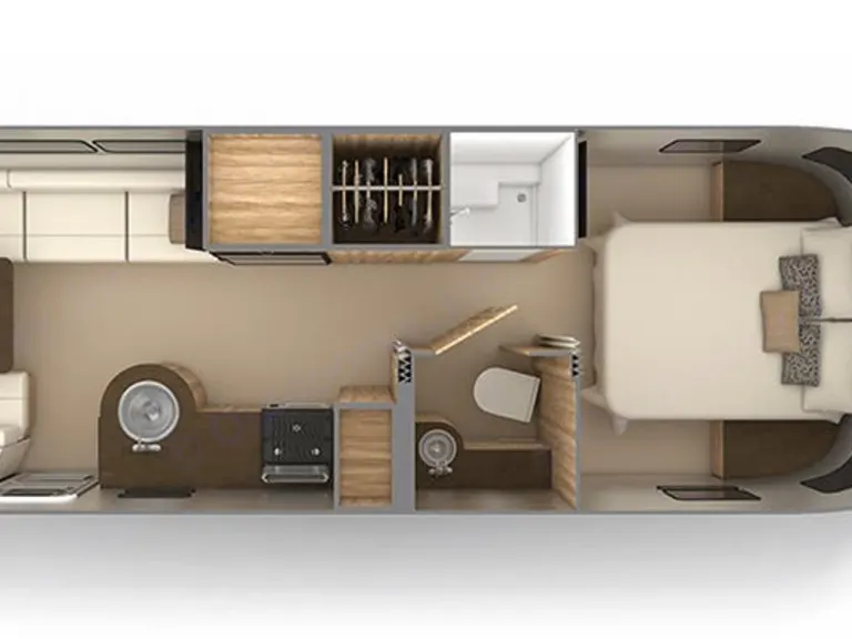 Leveling JacksLeveling Jack TypeFront Manual / Rear ManualKitchen / Living AreaKitchen / Living Area Flooring TypeVinylKitchen Table ConfigurationBench SeatsKitchen LocationCenterLiving Area LocationRearOven / StoveLayoutOven / StoveNumber Of Oven Burners3Overhead FanYesRefrigeratorRefrigerator SizeMid-SizeRefrigerator Power ModeElectric / PropaneSofaNumber Of Sofas1Sofa MaterialLeatherRecliners / RockersNumber Of Recliner / Rockers0BedsMax Sleeping Count6Number Of Bunk Beds0Number Of Double Beds0Number Of Full Size Beds0Number Of Queen Size Beds1Number Of King Size Beds0Number Of Convertible / Sofa Beds2Master BedroomMaster Bedroom Flooring TypeVinylMaster Bedroom Door StyleAccordionFull Size Master Bedroom ClosetNoMaster Bedroom Mirror DoorsNoMaster Bedroom Shades / CurtainsYesMaster Bedroom LocationFrontBunkhouseNoBathroomNumber Of Bathrooms1Bathroom Flooring TypeVinylBathroom LocationCenterToiletToilet TypePorcelainToilet LocationCenterShowerDoor TypePlastic / GlassShower LocationCenterBathroom SinkBathroom Sink LocationCenterBathroom Medicine CabinetBathroom Medicine Cabinet LocationCenterBathroom MirrorBathroom Mirror LocationCenterBathroom Vent / Fan SystemBathroom Vent / Fan System LocationCenterWheelsWheels CompositionAluminumNumber Of Axles2TiresTire BrandGoodyearRear Tire (Full Spec)Goodyear ST225/75R 15Spare TireSpare Tire LocationExterior MountedBrakesRear Brake TypeElectric DrumBatteryBattery Power ConverterYesBattery Converter Amps55PrewiringAir Conditioning PrewiringYesCable PrewiringYesPhone PrewiringYesHeat PrewiringYesTV Antenna PrewiringYesSatellite PrewiringYesWasher / Dryer PrewiringNoAir ConditioningAir Conditioning TypeAutomaticAir Conditioning15,000 BTUs*