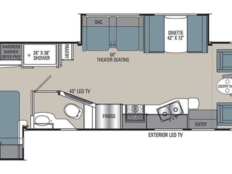 EngineEngineTriton / V10Chassis BrandFordChassis ModelF-Series Super DutyCylinders10Horsepower320 hp @ 3,900 RPMTorque460 ft-lbs. @ 3,000 RPMDisplacement6.8 litresFuel TypeGasFuel RequirementsRegularCarburetion TypeFuel InjectedTurbochargedNoSuperchargedNoTransmissionTransmission BrandTorqShiftTransmission Type6 Speed AutomaticOverdriveYesDrivelineDriveline Type4X2DimensionsLength33 ft. (396 in.)Width8.5 ft. (102 in.)Height12 ft. (144 in.)Wheelbase17.33 ft. (208 in.)WeightTowing Capacity5,000 lbs.Gvwr18,000 lbs.CapacitiesFuel Capacity80.0 gal.Storage Capacity604.3 gal.Holding TanksNumber Of Fresh Water Holding Tanks1Total Fresh Water Tank Capacity50.0 gal.Number Of Gray Water Holding Tanks1Total Gray Water Tank Capacity38.0 gal.Number Of Black Water Holding Tanks1Total Black Water Tank Capacity38.0 gal.Propane Tank(s)Number Of Propane Tanks1Total Propane Tank Capacity20.0 gal.Total Propane Tank Capacity85 lbs.2020 Coachmen Pursuit RVs for Sale Near YouConstructionBody MaterialAluminumSidewall ConstructionFiberglassDoorsNumber of Doors1Sliding Glass DoorNoSlideoutsNumber of Slideouts2Power Retractable SlideoutYesAwningNumber of Awnings1Awning Length17 ft. (204 in.)Power Retractable AwningYesScreened RoomNoLeveling JacksLeveling Jack TypeFront Power / Rear PowerKitchen / Living AreaKitchen / Living Area Flooring TypeVinylKitchen Table ConfigurationBench SeatsKitchen LocationCenterLiving Area LocationFrontOven / StoveLayoutOven / StoveNumber Of Oven Burners3Overhead FanYesRefrigeratorRefrigerator SizeFull-SizeRefrigerator Power ModeElectricSofaNumber Of Sofas0Recliners / RockersNumber Of Recliner / Rockers2MaterialVinylBedsMax Sleeping Count6Number Of Bunk Beds0Number Of Double Beds1Number Of Full Size Beds0Number Of Queen Size Beds0Number Of King Size Beds1Number Of Convertible / Sofa Beds1Master BedroomMaster Bedroom Flooring TypeVinylMaster Bedroom Door StyleFull Sliding DoorFull Size Master Bedroom ClosetYesMaster Bedroom Mirror DoorsNoMaster Bedroom Shades / CurtainsYesMaster Bedroom LocationRearBunkhouseNoBathroomNumber Of Bathrooms1Bathroom Flooring TypeVinylBathroom LocationCenterToiletToilet TypePorcelainToilet LocationCenterShowerDoor TypePlastic / GlassShower LocationCenterBathroom SinkBathroom Sink LocationCenterBathroom Medicine CabinetBathroom Medicine Cabinet LocationCenterBathroom MirrorBathroom Mirror LocationCenterBathroom Vent / Fan SystemBathroom Vent / Fan System LocationCenterWheelsWheels CompositionSteelFront Wheel Width0.56 ft. (6.75 in.)Rear Wheel Width0.56 ft. (6.75 in.)Number Of Axles1TiresFront Tire (Full Spec)245/70R 19.5GRear Tire (Full Spec)245/70R 19.5GBrakesFront Brake TypeHydraulic DiscRear Brake TypeHydraulic DiscRear HitchRear Hitch TypeReceiverSeatSeat TypeBucketSeat MaterialVinylPower Adjustable SeatNoReclining SeatsYesSwivel SeatsYesSeat ArmrestsYesSeat SpecificationsNumber Of Seats2Number Of Rows1BatteryBattery Power ConverterYesBattery Converter Amps55PrewiringAir Conditioning PrewiringYesCable PrewiringYesPhone PrewiringNoHeat PrewiringYesTV Antenna PrewiringYesSatellite PrewiringYesWasher / Dryer PrewiringYesAir ConditioningAir Conditioning TypeAutomaticAir Conditioning30,000 BTUs*