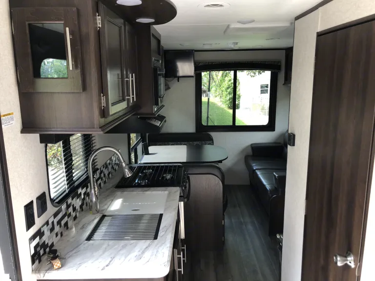 This is the perfect little pull behind for a couple, small family, or small group of friends! At only 4,600lbs and 26 feet, it's easy to pull with almost anything! Brand new and fully equipped plus a large awning for plenty of outdoor covered hang out space!Not interested in pulling? We deliver!