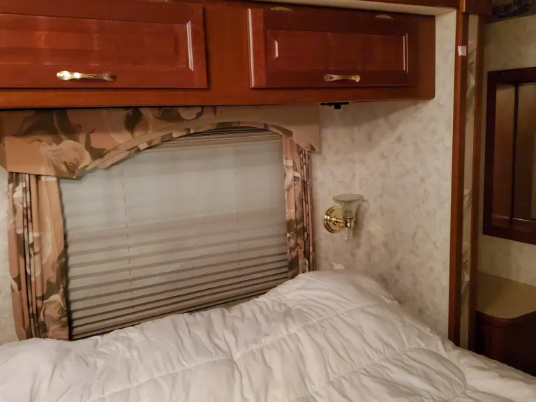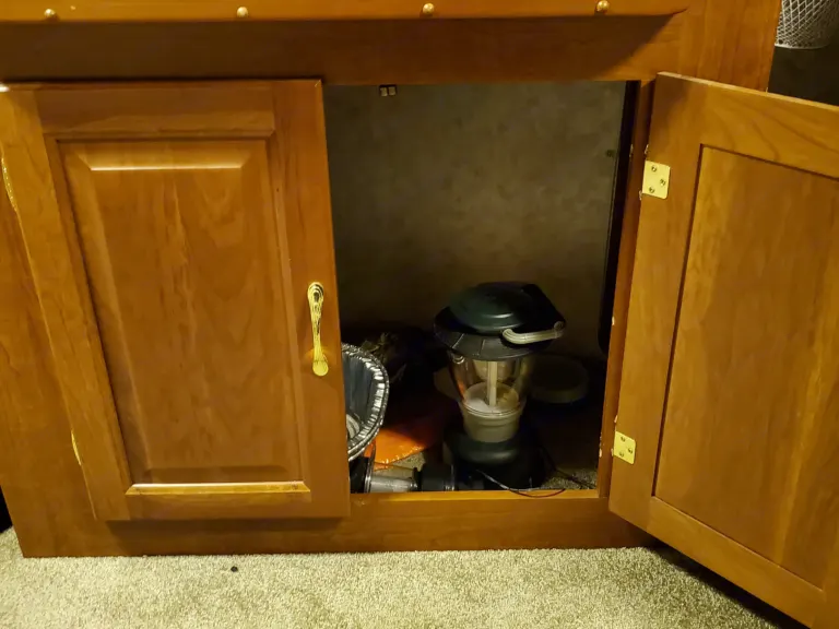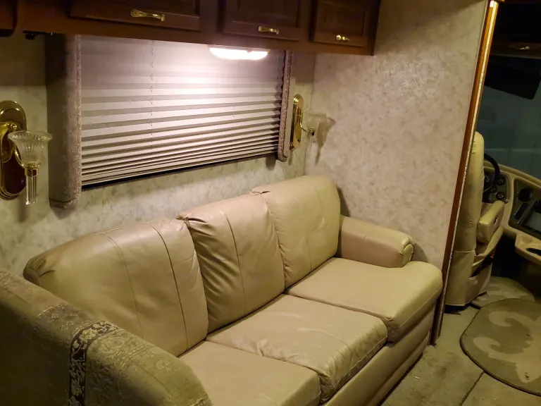 Stored inside Climate-Controlled garage. 2 slide-outs. Free Climate-Controlled garage space with rental to keep your vehicle safe and clean while using RV. What's includedIncludes fresh linens, camping chairs, pots, pans, skillet, pitcher, vacuum, toaster, fans, waffle maker, can opener, coolers, atlas, bags game, flashlights, cleaning supplies, grilling utensils, extension cords, etc. Renter to provide own plates, cups, glasses, silverware.Other things to noteNo Pets, No smoking. $150 cleaning fee if unit brought back with dirty interior. $100 fee if unit brought back without emptying blackwater (sewage) tank and gray water tank if used during trip. Propane tanks and fuel tanks must be filled prior to return or cost to refill them will be charged to renter.