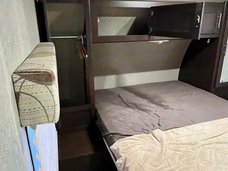 Many upgrades come in our trailer in hopes to make your experience wonderful.The double bunks mattresses have been replaced with brand new memory foam mattresses. The Master RV Queen bed has an upgraded mattress as well. Each bunk bed has their own TV & DVD player so the kids can unwind to their favorite movie.