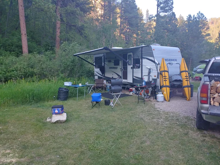 Nice trailer easy to pull can be towed by a 1/2 ton. I also have an equalizer hitch that will come with rental. Fully loaded with everything you could need dishes utensils basic spices cooking utensils linens towels blankets sleeping bags a spare tent for the kiddos spare coolers even though there is a 8 cu ft fridge with freezer 2 burner camp chef 3 dutch ovens spare tables chairs outdoor solar lights solar panel to make sure you stay charged up. Can work out delivery and retrieval to in some cases and places also willing to rent out at my property with power and water hookups
