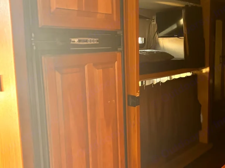The private rear master bedroom features a comfortable queen bed, ample storage, and a peaceful space to unwind after a full day of exploring. Close the door, relax, and enjoy a restful night wherever the road takes you.Bathroom: