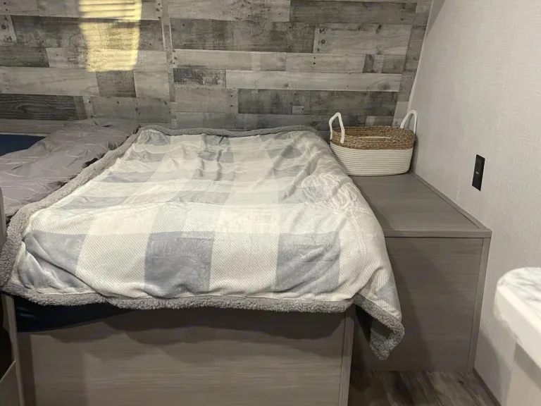 Enjoy the convenience of a private bathroom with a shower and toilet, giving you everything you need without relying on campground facilities. RV-safe toilet paper and septic tabs are provided for your convenience.Exterior: