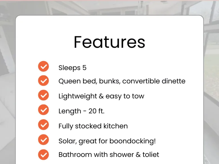- A consistent, high-quality experience backed by a trusted RV companyPlease Bring: