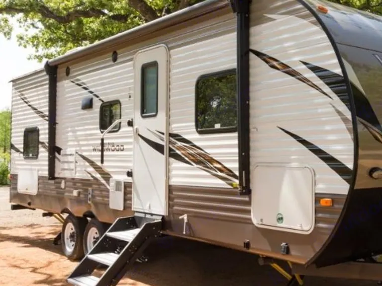 This is a beautiful new Wildwood Trailer with bunks that comfortably sleeps 7. It is a great family unit. With a separate bedroom with an RV Queen bed. This one also includes a jackknife sofa that folds to a small bed and the U-shaped dinette converts to a double bed. Also there are 2 semi-private bunks in this one. The bathroom also includes a tub/shower combo with a small tub for children.Take this one to see the country or just for a weekend getaway. You won't be disappointed.