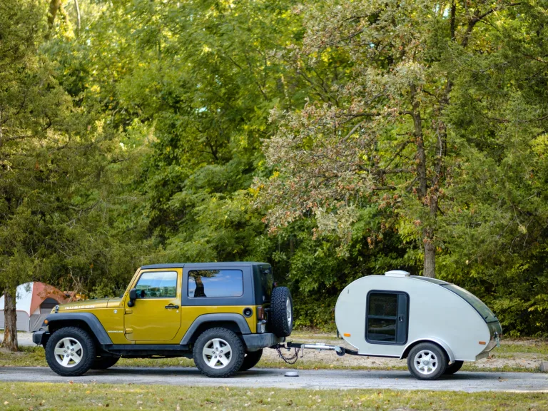 This is our light weight little guy teardrop trailer. I comfortably fit two adults and is towable behind anything with a hitch.