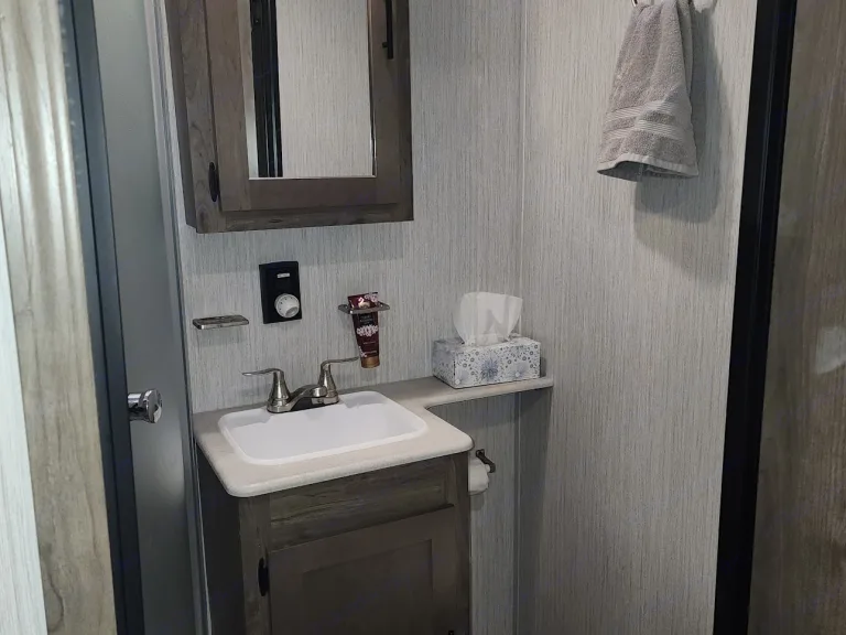 Dual Entry: There are two entry doors, one leading directly into the living area and the other leading into the bathroom, allowing for more convenience and flexibility.Climate Control: The 31 Qbbh is equipped with both a powerful air conditioning system and a heater to ensure comfort in various weather conditions.Fresh Water & Waste: Features a large freshwater tank, and its waste systems are easy to manage.
