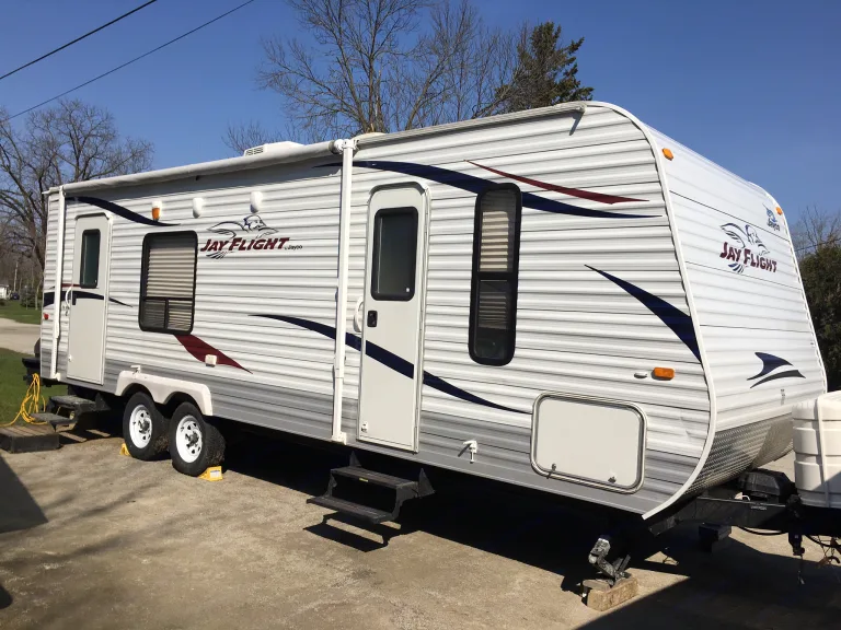 Sleeps 6. Kitchen is in front bedroom in back and one slide out.